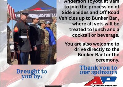 We also have a lot of social events throughout the season. We continue to plan lots of exciting events. We have events such as a sunset ride, Dinner on the Boulevard, Campouts, winter party, Poker Run fundraiser, and Vet Ride with military ceremony. We participate in the London Bridge Days Parade and meet under the London Bridge for a decorate your rig contest in December.
